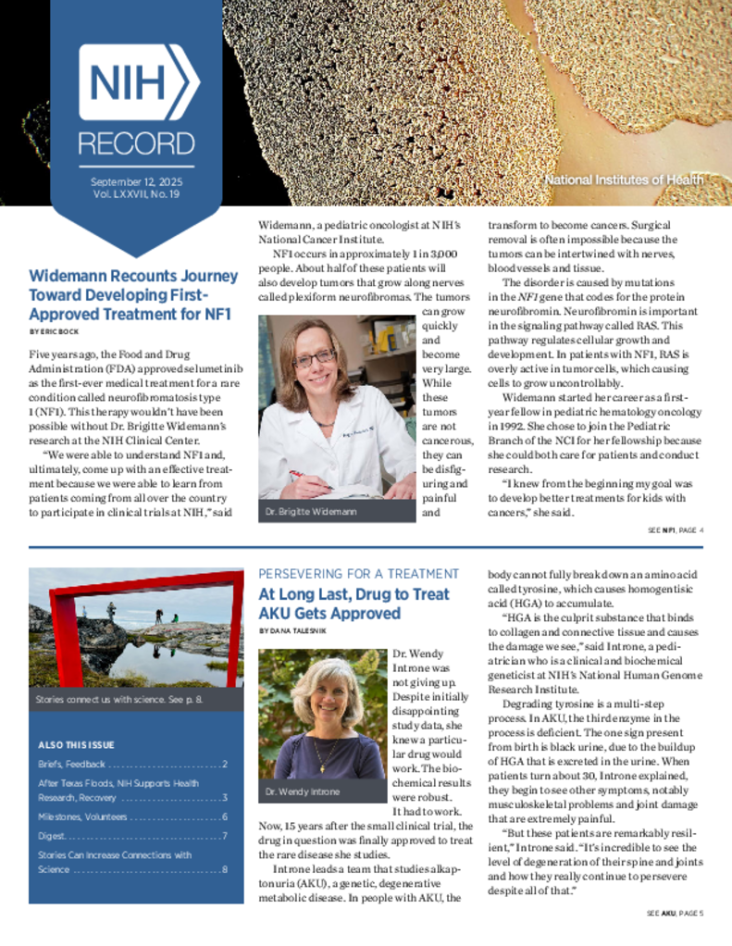 You can pick up a print copy of the Record every two weeks! Paper editions are available now in several high-traffic areas on the Bethesda campus. Look for a kiosk near you: Clinical Research Center atrium, first floor; CC café, B1-level; Bldg. 1, B1 level at the elevators; and Bldg. 31A lobby.