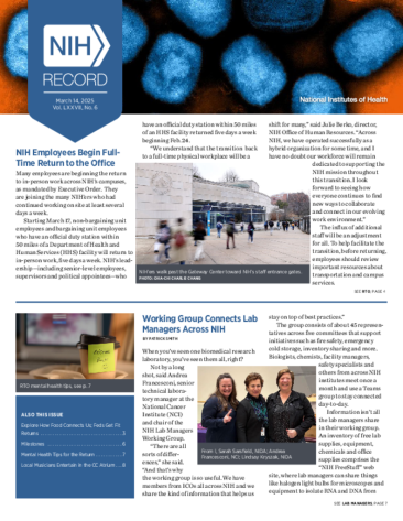 The NIH Record, founded in 1949, is the biweekly newsletter for employees of the National Institutes of Health.